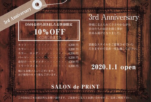 忙しいときだって、お得情報はしっかり伝えたい!サロンプリントならデザインを選ぶだけ。楽々すぐに作れます。