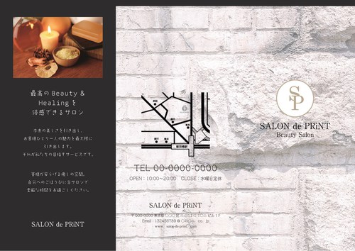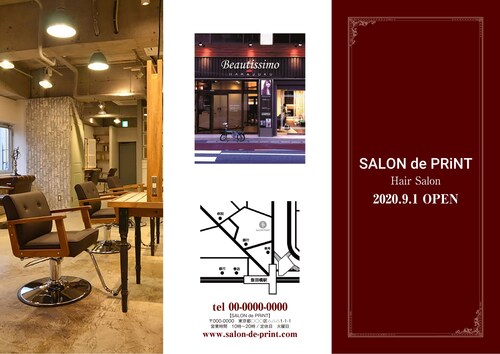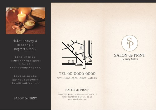カウンター横や、店頭看板に置きやすい3つ折りパンフレット。広げてA4サイズ、情報量たっぷりです。※ご確認ください